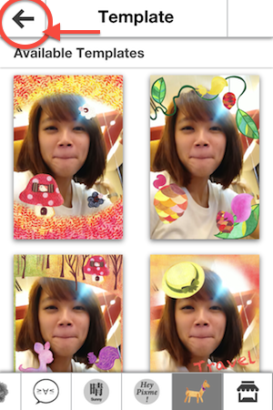 1. 在進入編輯頁面時,預設會進入主題樣板的頁面,但你只要點左上角的箭頭,就能分別編輯貼紙、相框跟文字